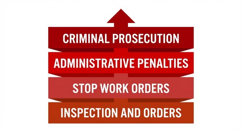 Alberta OHS enforces compliance through a graduated system. Understanding the escalation ladder helps you know what is at stake.