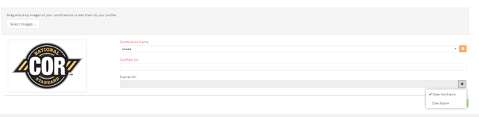 When you upload a certificate that does not expire, simply drag and drop your certificate into the system and click the gear on the bottom right. It will give you two options.